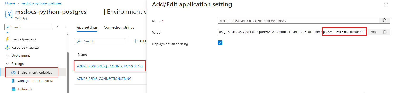 - Selecione AZURE_POSTGRESQL_CONNECTIONSTRING.