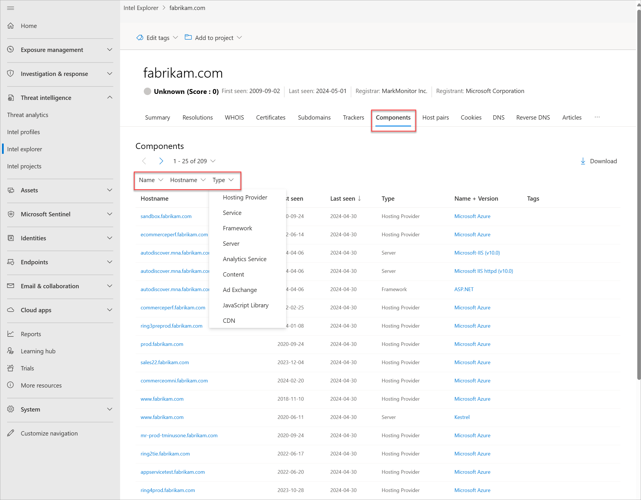 Informações sobre Ameaças do Microsoft Defender (Defender TI) permite-lhe aceder à nossa vasta coleção de dados de pesquisa num formato de tabela indexada e dinâmica. Estes conjuntos de dados podem ser grandes, devolvendo grandes quantidades de dados históricos e recentes. Ao permitir-lhe ordenar e filtrar adequadamente os dados, ajudamo-lo a ver facilmente as ligações de interesse.