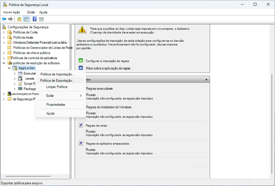 - Clique com o botão direito do rato em AppLocker e selecione Exportar Política...
