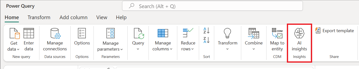 Às vezes, dependendo do requisito, talvez seja necessário aplicar algumas funções de IA e machine learning nos dados por meio do fluxo de dados. Essas funcionalidades estão disponíveis em fluxos de dados do Power BI e exigem um workspace Premium.