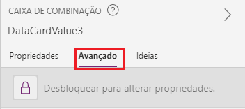 Para resolver o problema, atualize a função Choices() na propriedade Items para a tabela que está no outro lado do relacionamento muitos para muitos. Para realizar essa tarefa, desbloqueie o cartão na guia Avançado.