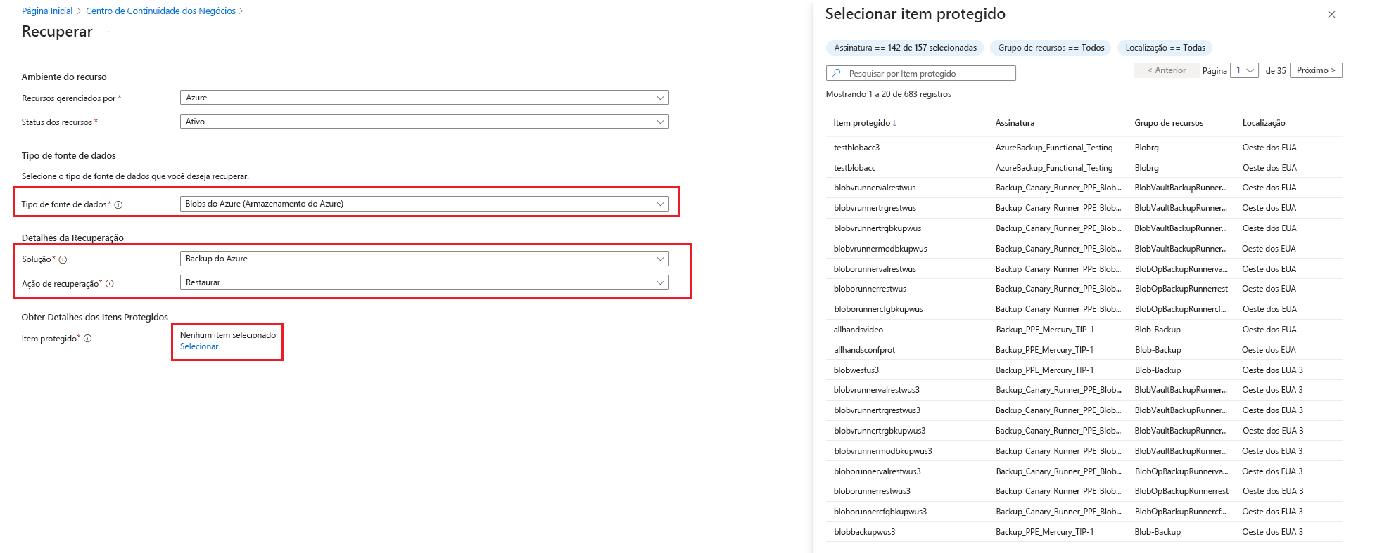 Este artigo descreve como usar o portal do Azure para realizar restaurações de Blobs do Azure a partir de backups operacionais ou arquivados. Com backups operacionais, pode-se restaurar todos os blobs de bloco em contas de armazenamento com backup operacional configurado ou um subconjunto do conteúdo de blob para qualquer momento no tempo dentro do período de retenção. Com cópias de segurança armazenadas em cofre, pode realizar restaurações usando um ponto de recuperação criado com base no seu programa de backup.