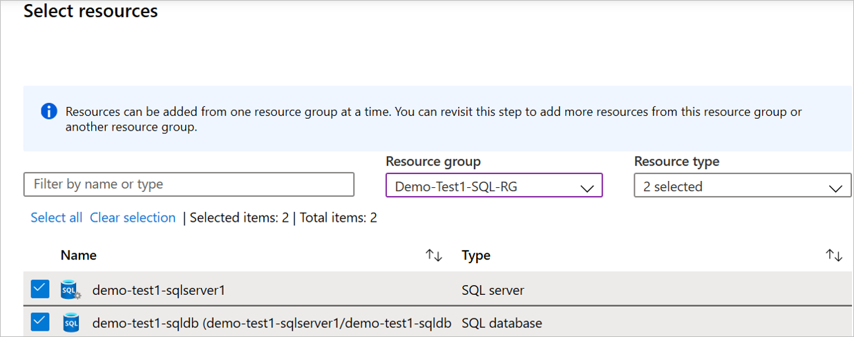 Em Entre regiões, para o recurso do SQL Server, na coluna Configuração de destino , selecione Recurso não atribuído.
