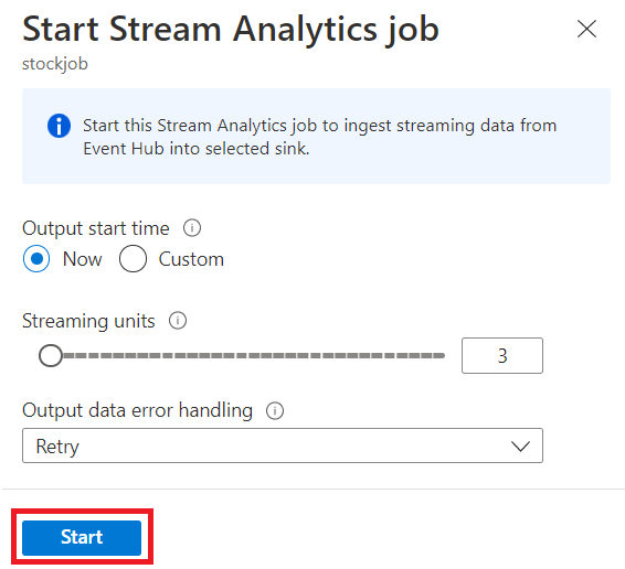 Selecione Salvar e, em seguida, selecione Iniciar o trabalho do Stream Analytics.