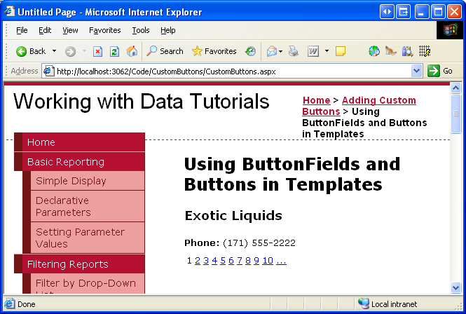 A Figura 7 mostra a página CustomButtons.aspx quando visualizada através de um navegador.