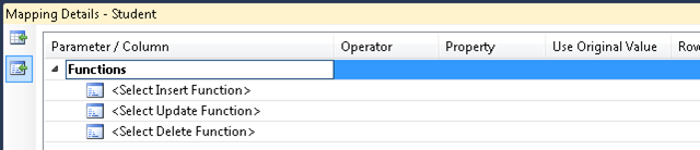Na mesma janela Detalhes de Mapeamento , mapeie a Update função para o UpdateStudent procedimento armazenado (especifique FirstMidName como o valor do parâmetro para FirstName, como você fez para o Insert procedimento armazenado) e a Delete função para o DeletePerson procedimento armazenado.