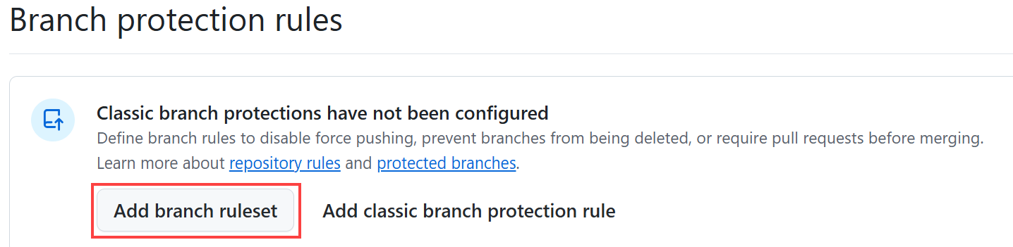 Selecione Adicionar regra de ramificação ou etiqueta de implantação, verifique se Tipo de referência: Ramificação está selecionada e digite main no campo Padrão de nome.