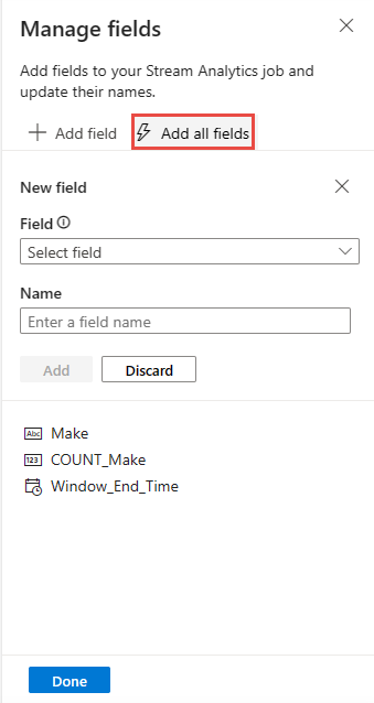 Se você quiser criar o painel do Power BI em tempo real diretamente sem capturar os dados no banco de dados, pule as etapas #3 e 4 e, em seguida, vá para este guia para criar um painel em tempo real com o conjunto de dados do Power BI produzido pelo trabalho do Stream Analytics.