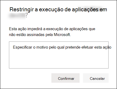 2. Especifique na caixa de texto o motivo pelo qual pretende efetuar esta ação. Selecione Confirmar.