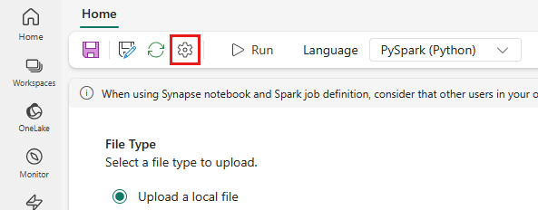 No painel que se abre, em Obter Dados, selecione Definição de Tarefa do Spark.