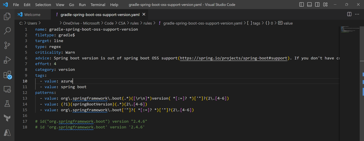 Pode editar cada regra de forma independente com um editor de texto. Pode encontrar a explicação detalhada de cada campo no manual do utilizador disponível no repositório cloud-suitability-analyzer .