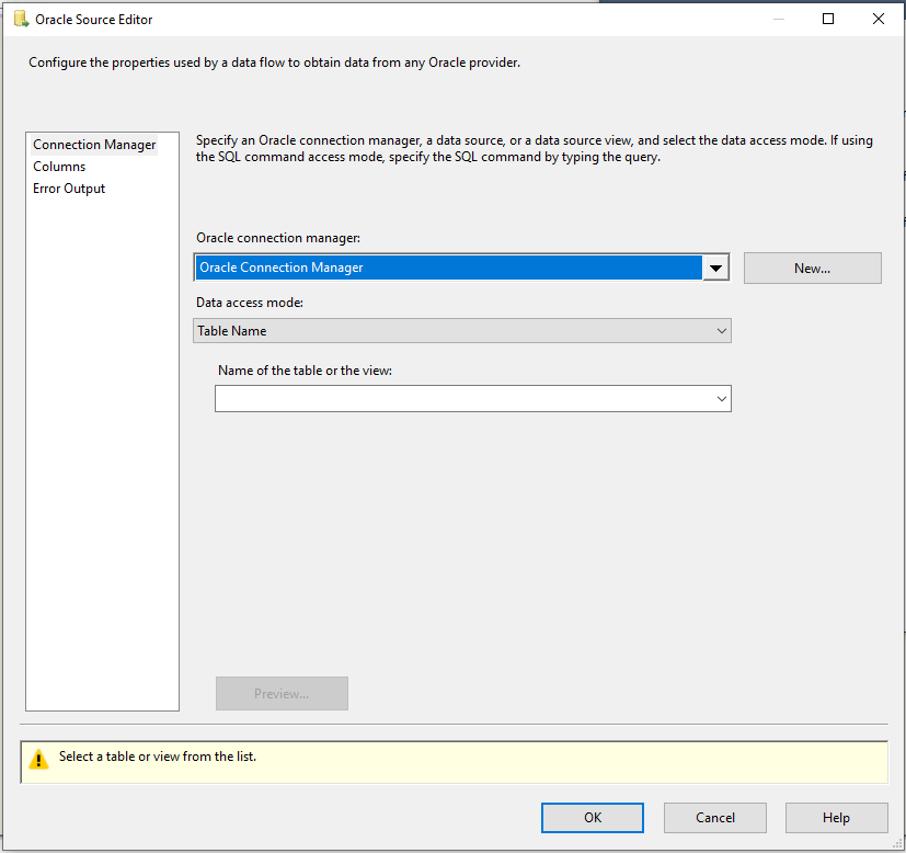 Você pode configurar o código-fonte Oracle programaticamente ou por meio do SSIS Designer.