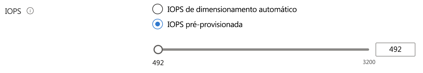 O Banco de Dados do Azure para MySQL tem duas maneiras de alocar a capacidade de E/S do disco: IOPS pré-provisionadas vs IOPS "autodimensionadas" (operações de E/S por segundo).