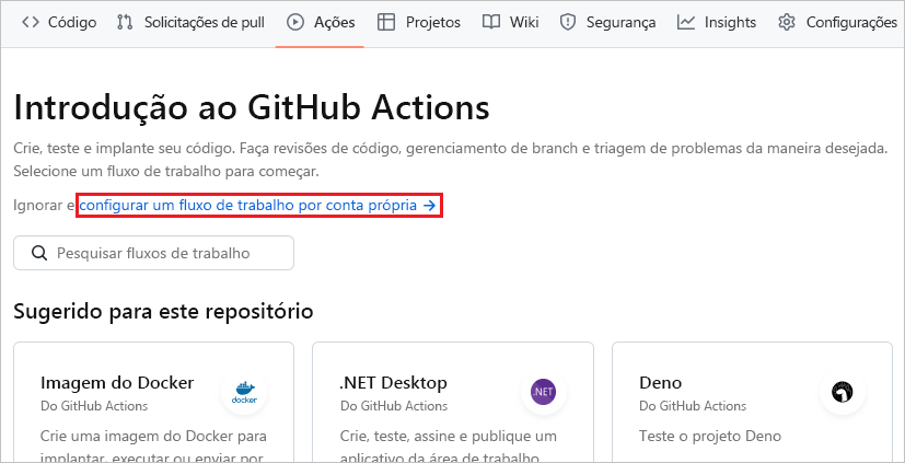 Na página Get started with GitHub Actions, selecione o link set up a workflow yourself.