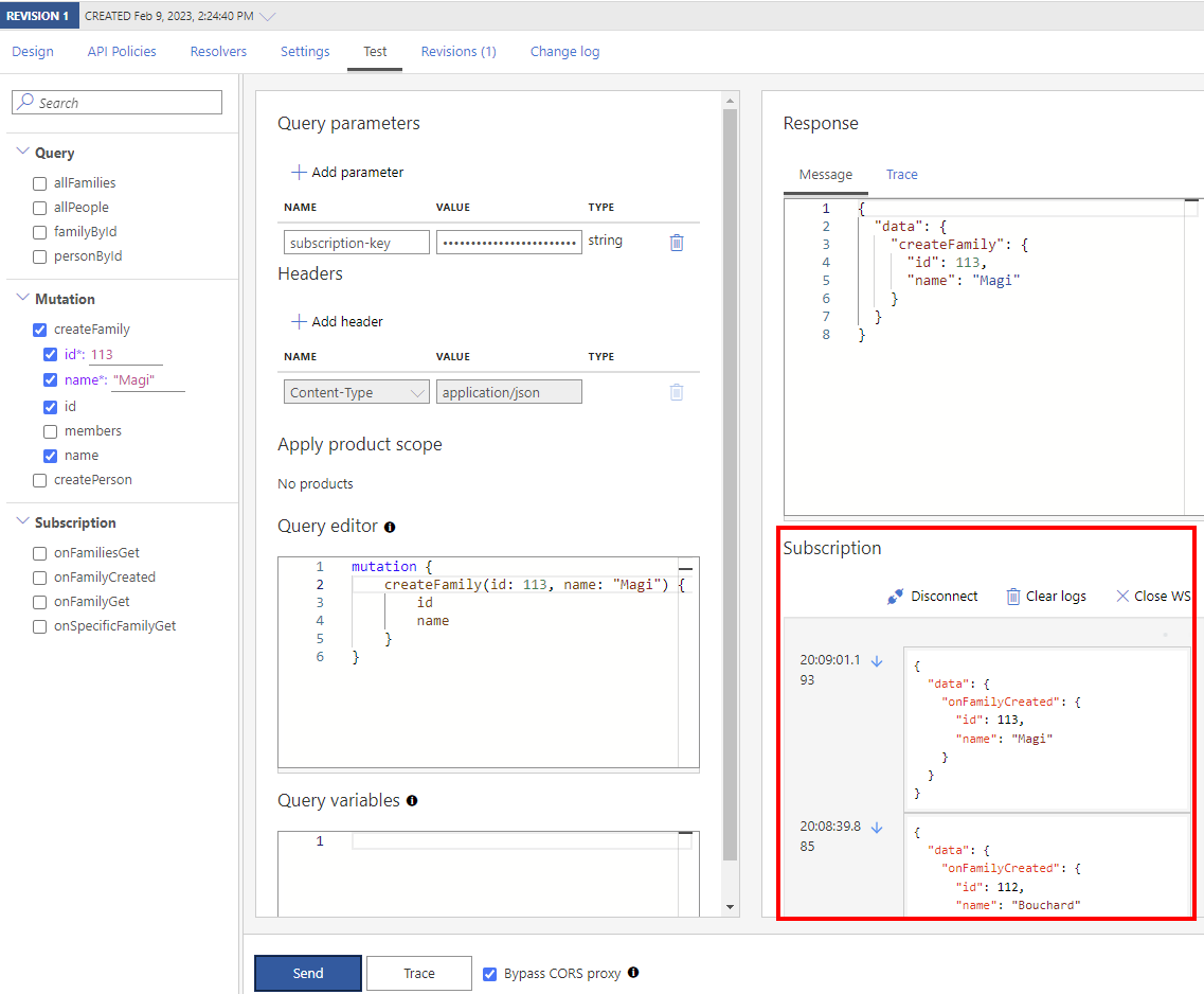 If your GraphQL API supports a subscription, you can test it in the test console.