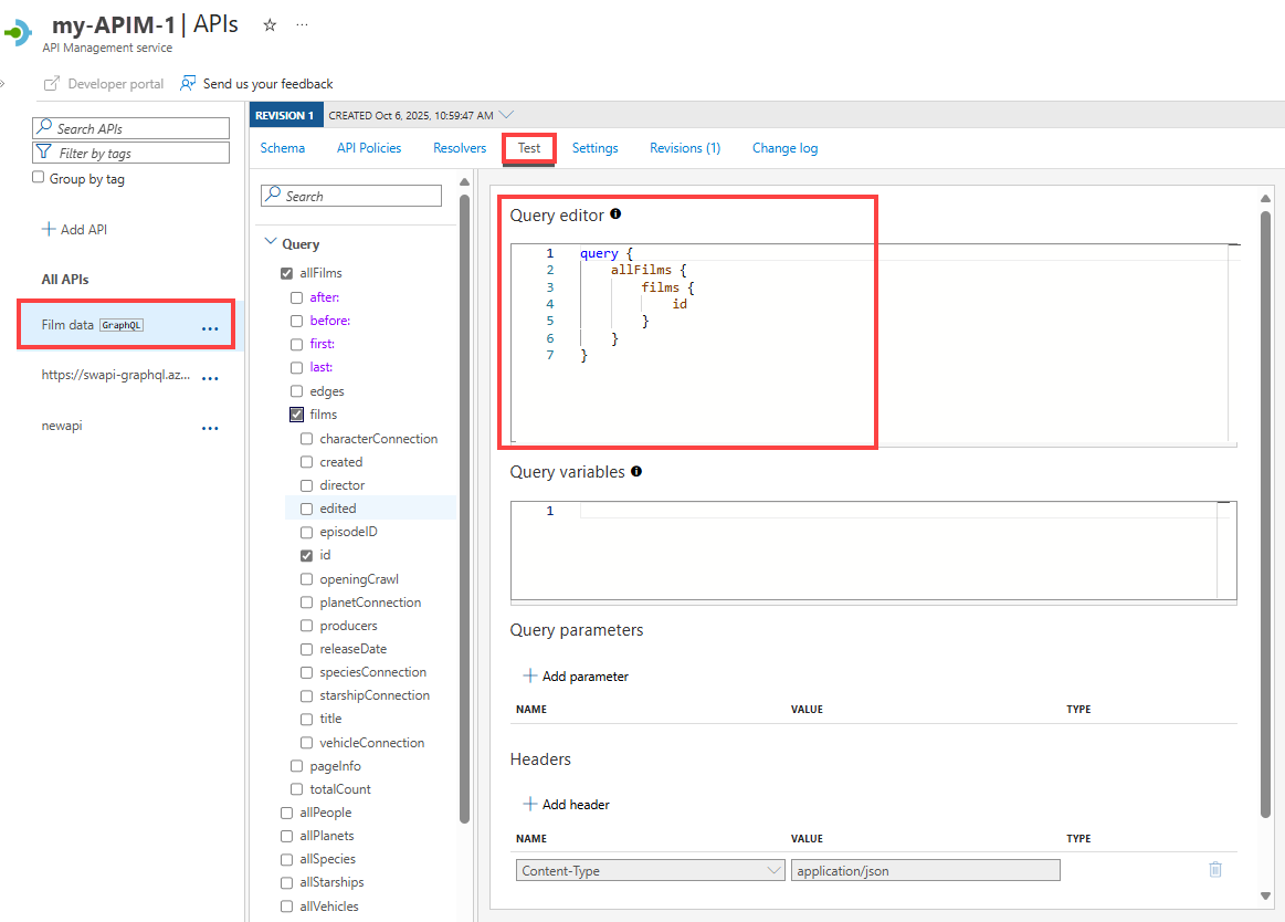 Value Description Display name The name by which your GraphQL API will be displayed. Name The raw name of the GraphQL API. Automatically populates as you type the display name. GraphQL type Select Synthetic GraphQL to import from a GraphQL schema file. Fallback GraphQL endpoint Optionally enter a URL with a GraphQL API endpoint name. API Management passes GraphQL queries to this endpoint when a custom resolver isn't set for a field. Description Add a description of your API. URL scheme Select a scheme based on your GraphQL endpoint. Select one of the options that includes a WebSocket scheme (WS or WSS) if your GraphQL API includes the subscription type. The default selection is HTTP(S). API URL suffix Add a URL suffix to identify the specific API in the API Management instance. Must be unique in the API Management instance. Base URL Uneditable field displaying your API base URL. Tags Optionally associate your GraphQL API with new or existing tags. Products Associate your GraphQL API with a product to publish it. Version this API? Select the checkbox to apply a versioning scheme to your GraphQL API. Select Create.