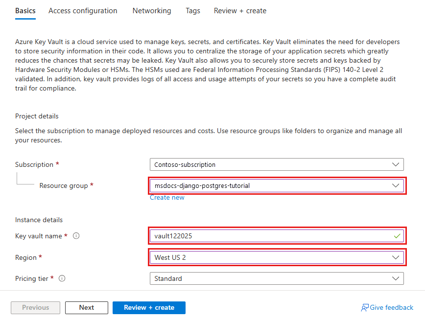 1. Resource Group: Select Create new and enter msdocs-django-postgres-tutorial.