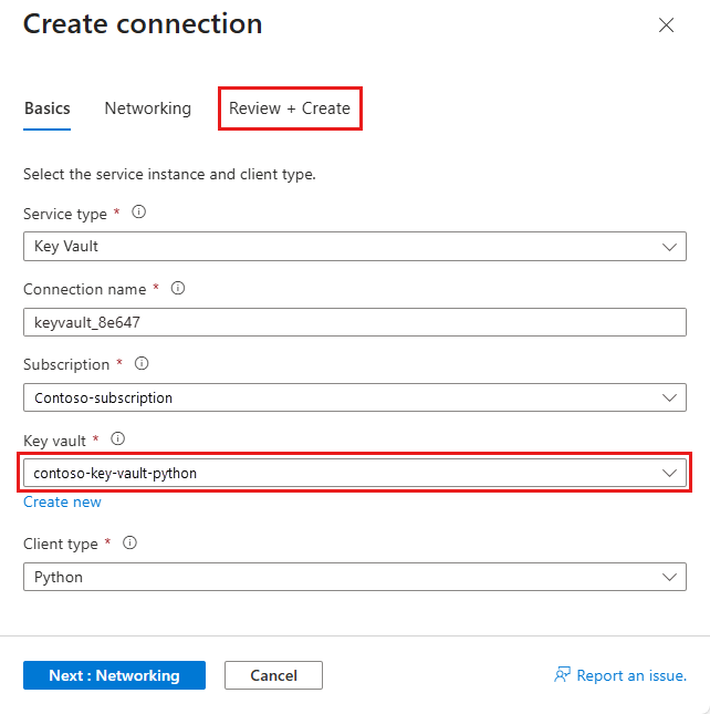 10. Select Review + create, then select Create. Wait for the key vault deployment to finish. You should see Your deployment is complete.