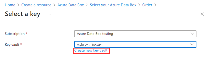 Or select Create new key vault if you want to create a new key vault.