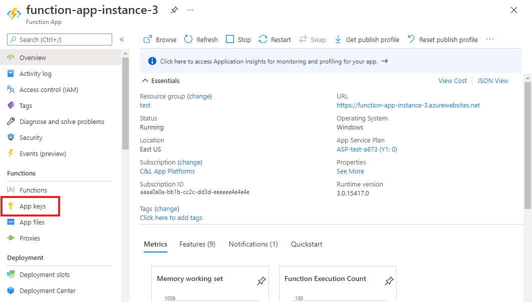 • A host key in the function app. The key is named apim-<your API Management service instance name>.