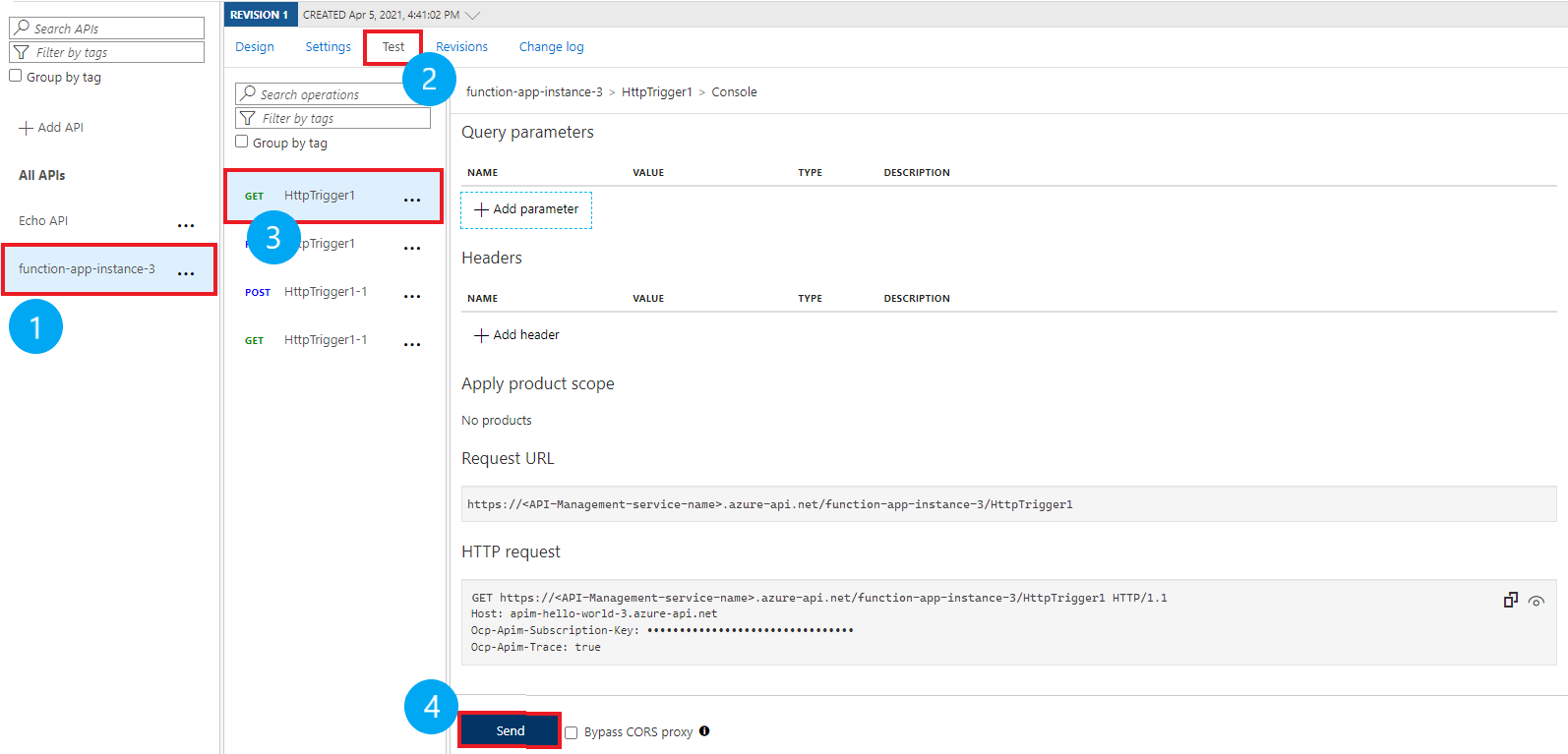 • If you created the API Management instance, you're an administrator, so the key is filled in automatically.