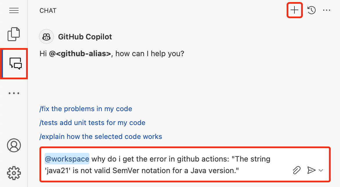@workspace. For more information, see Use the @workspace agent. - In the chat session, GitHub Copilot can suggest changes and (with