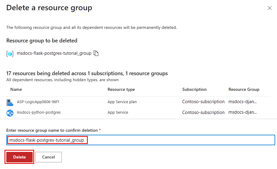 - In Resource Group, select msdocs-python-postgres-tutorial.