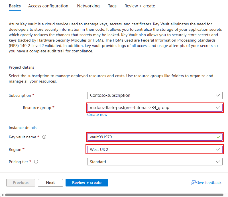- In Name, type msdocs-python-postgres-XYZVaultEndpoint.