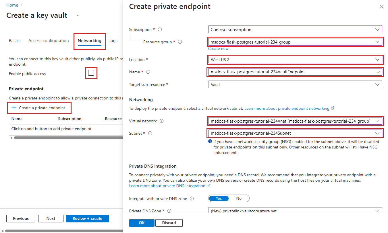 Step 3: Secure the key vault with a Private Endpoint: