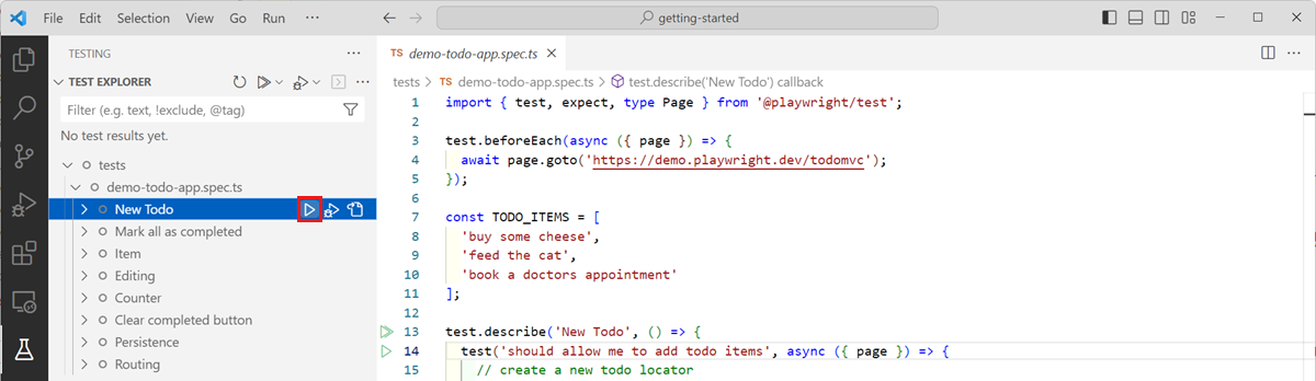 Perform the following steps to run a single Playwright test with Playwright Workspaces: