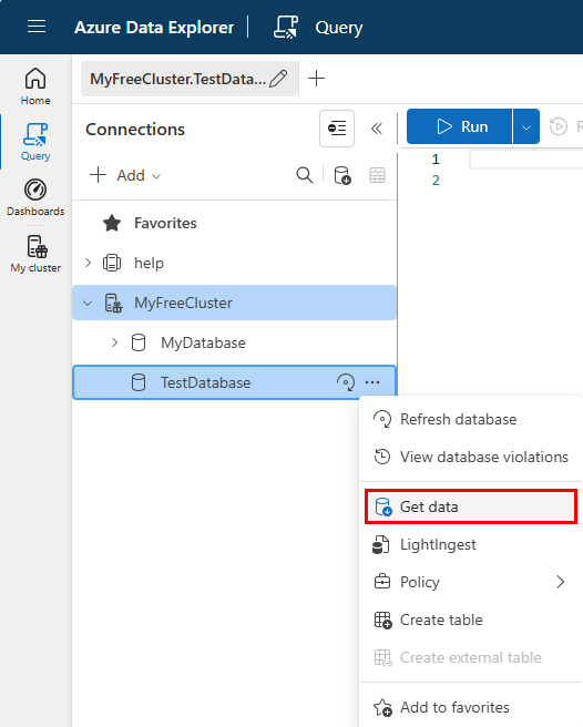 - An Azure Data Explorer cluster and database. Create a cluster and database.