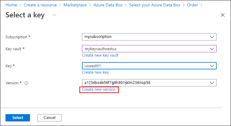 - For Key vault, you can select an existing key vault from the dropdown list.