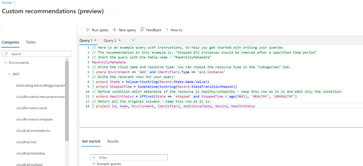 - Create custom recommendations for all clouds (Azure, AWS, and GCP) with a KQL query.