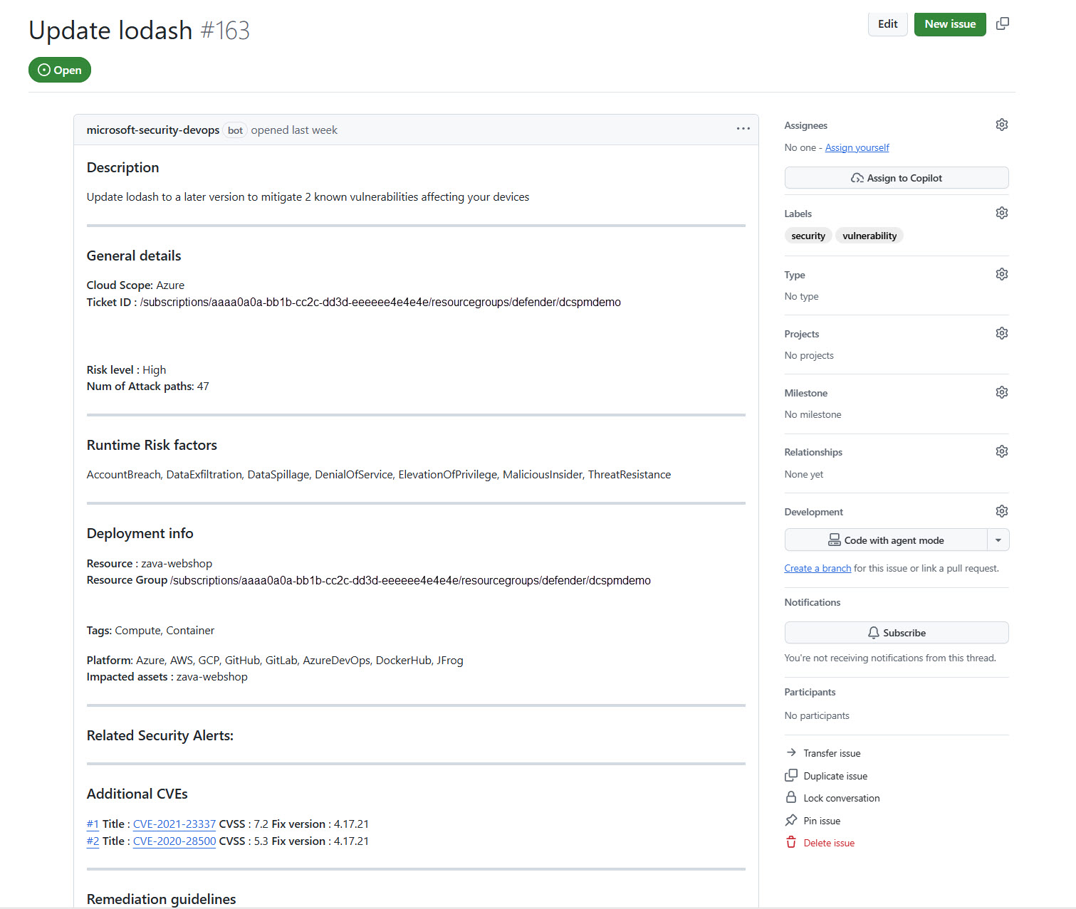 GitHub issue fixes, progress, and campaign advancements are tracked in real time. The statuses are reflected both in GitHub and in Defender for Cloud.