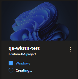 Track the creation progress by using the dev box tile in the developer portal. The status changes from Creating to Running when the dev box is ready for you to connect.