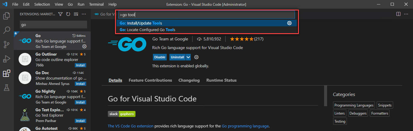 3. Install the Go extension