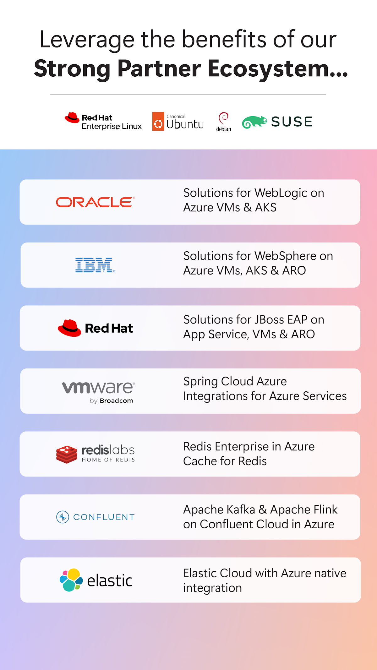 We partnered with Red Hat to deliver Red Hat JBoss Enterprise Application Platform (EAP) on Azure App Service - enabling Java developers to deploy their Jakarta EE applications into App Service without requiring a separate Red Hat subscription or license with integrated support from both companies. We also launched similar joint offerings for JBoss EAP on Azure VMs, on Azure VM Scale Sets, and on Azure RedHat OpenShift (ARO) - the latter also jointly operated by Microsoft and Red Hat.