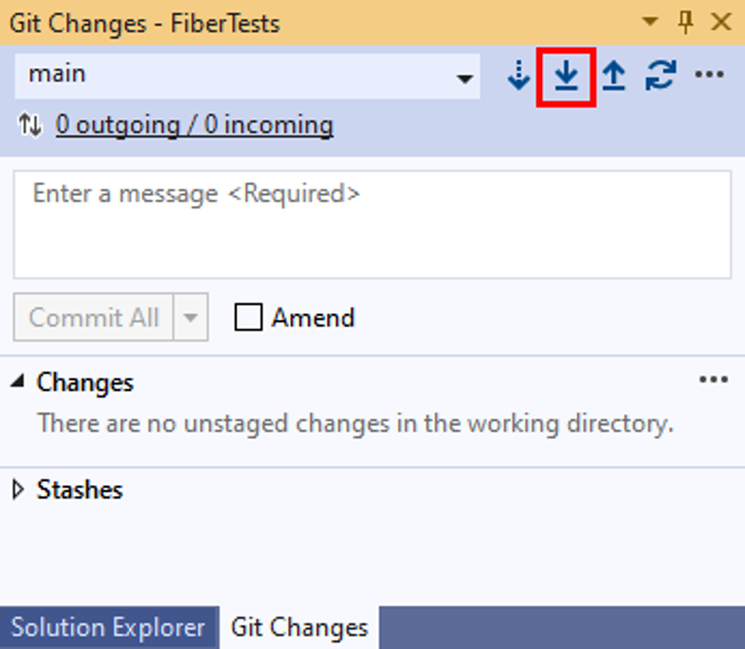 In the Git Changes window, choose Pull.