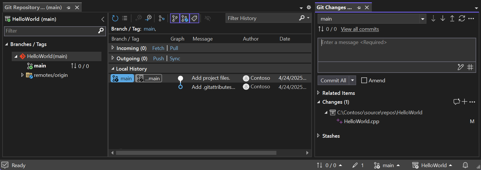 For more information, see Git experience in Visual Studio and Side-by-side comparison of Git and Team Explorer.