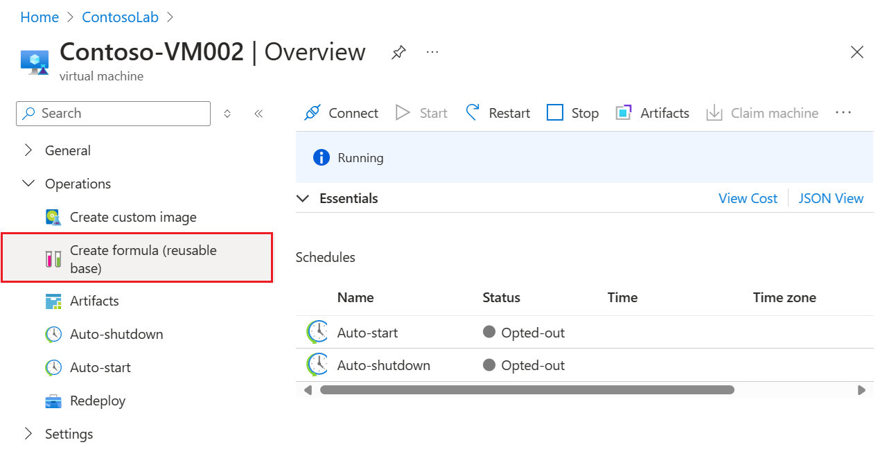 On the Overview page for the VM, expand the Operations section in the left menu, and select Create formula (reusable base):
