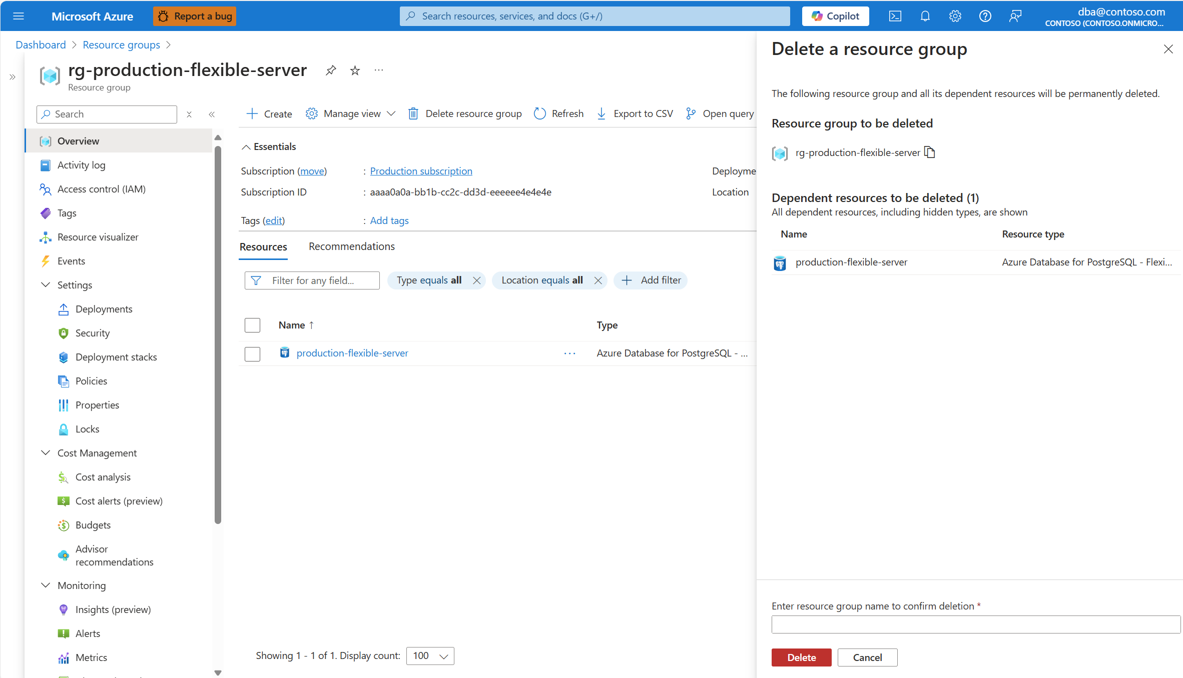 You can clean up the resources that you created in this quickstart in one of two ways. You can delete the Azure resource group, which includes all the resources in the resource group. If you want to keep other resources deployed in the same resource group intact, you can delete only the Azure Database for PostgreSQL flexible server instance.