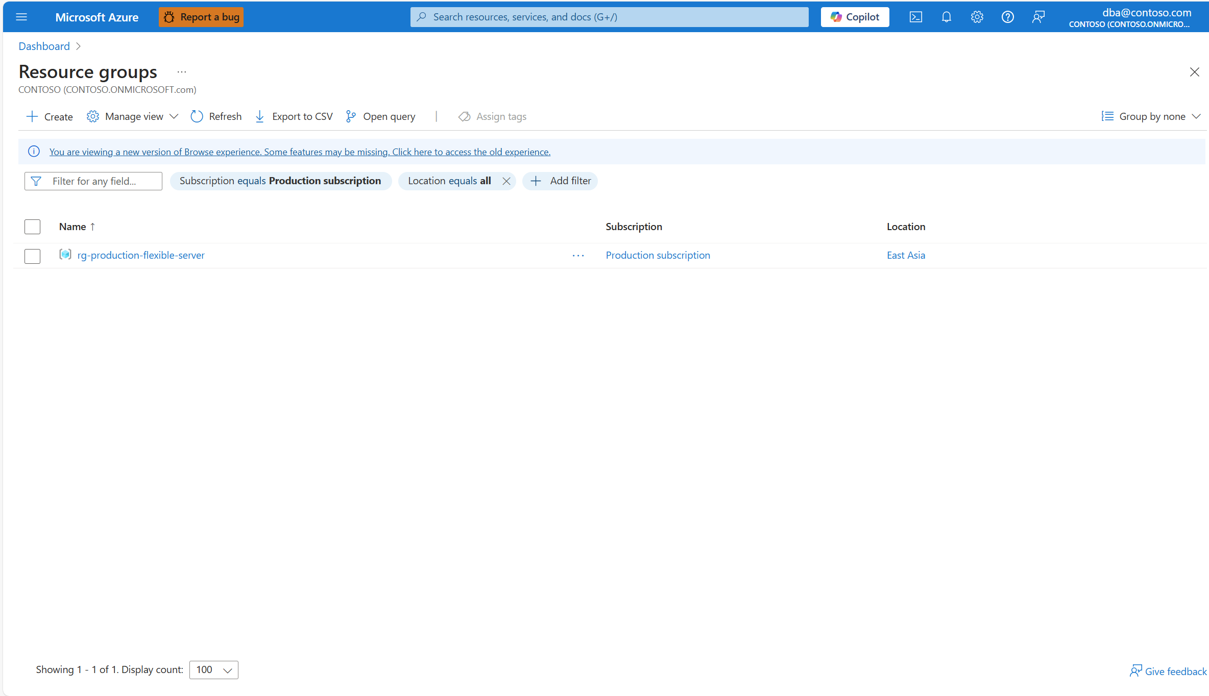 Section Setting Suggested value Description Can be changed after instance creation Project details Subscription Select the name of the subscription in which you want to create the resource. A subscription is an agreement with Microsoft to use one or more Microsoft cloud platforms or services, for which charges accrue based on either a per-user license fee or on cloud-based resource consumption. If you have multiple subscriptions, choose the subscription in which you'd like to be billed for the resource. An existing Azure Database for PostgreSQL flexible server instance can be moved to a different subscription from the one it was originally created. For more information, see Move Azure resources to a new resource group or subscription. Resource group The resource group in the selected subscription, in which you want to create the resource. It can be an existing resource group, or you can select Create new, and provide a name in that subscription which is unique among the existing resource group names. A resource group is a container that holds related resources for an Azure solution. The resource group can include all the resources for the solution, or only those resources that you want to manage as a group. You decide how you want to allocate resources to resource groups based on what makes the most sense for your organization. Generally, add resources that share the same lifecycle to the same resource group so you can easily deploy, update, and delete them as a group An existing Azure Database for PostgreSQL flexible server instance can be moved to a different subscription from the one it was originally created. For more information, see Move Azure resources to a new resource group or subscription. Server details Server name The name that you want to assign to the server. A unique name that identifies your Azure Database for PostgreSQL flexible server instance. The domain name postgres.database.azure.comis appended to the server name you provide, to conform the fully qualified host name by which you can use a Domain Naming System server to resolve the IP address of your instance.Although the server name can't be changed after server creation, you can use the point in time recovery feature, to restore the server under a different name. An alternative approach to continue using the existing server, but being able to refer to it using a different server name, would use the virtual endpoints to create a writer endpoint with the new desired name. With this approach, you could refer to the instance by its original name, or that assigned to the write virtual endpoint. Region The name of one of the regions in which the service is supported, and is more adequate for you to deploy your instance. Compliance, data residency, pricing, proximity to your users, or availability of other services in the same region, are some of the requirements you should use when choosing the region. The service doesn't offer a feature to automatically and transparently relocate an instance to a different region. PostgreSQL version The version selected by default. You can select among the list of major versions of PostgreSQL currently supported by the service. Currently those versions are: 18, 17, 16, 15, 14, 13, 12, 11 Workload type Default SKU selection. You can choose from Development(Burstable SKU),Production(General Purpose, by default, or Memory Optimized SKUs). You can further customize the SKU and storage by selecting Configure server.The service provides a built-in feature which can upgrade the current major version of your instance to any other higher version supported by the feature. For more information, see major version upgrades. Availability zone Your preferred availability zone. You can choose in which availability zone you want your server to be deployed. Being able to choose the availability zone in which your instance is deployed, is useful to colocate it with your application. If you choose No preference, a default availability zone is automatically assigned to your instance during its creation. Although the availability zone in which an instance is deployed can't be changed after its creation, you can use the point in time recovery feature to restore the server under a different name on a different availability zone. High availability High availability Enable it for Same zone or Zone redundant. If you select either of these two options, a standby server with the same configuration as your primary is automatically provisioned. The standby server is provisioned in the same availability zone or in a different availability zone within the same region, depending on the option selected. Notice that high availability can be enabled or disabled after the server is created. High availability can be enabled or disabled after server creation. However, if it's enabled, it can't be changed directly from Same zone to Zone redundant or vice versa. In order to implement such change, you first need to disable high availability, and then re-enable it choosing the newly desired mode. Authentication Authentication method Although the recommended authentication method is Microsoft Entra authentication, for the sake of simplicity, in this quickstart let's select PostgreSQL authentication only. By selecting PostgreSQL authentication only, you're required to provide a PostgreSQL native user name and a password. If you choose Microsoft Entra authentication, you need to provide the object identifier of the Microsoft Entra user or group which you want to assign as the administrator of the instance. If you choose, PostgreSQL and Microsoft Entra authentication, you need to satisfy both previous requirements. Can be changed to any of the three supported values after server creation. Administrator login The name of the PostgreSQL native user that you want to assign as the administrator of your instance. For this example, let's set it to adminuser.The admin username must contain between 1 and 63 characters, must only consist of n