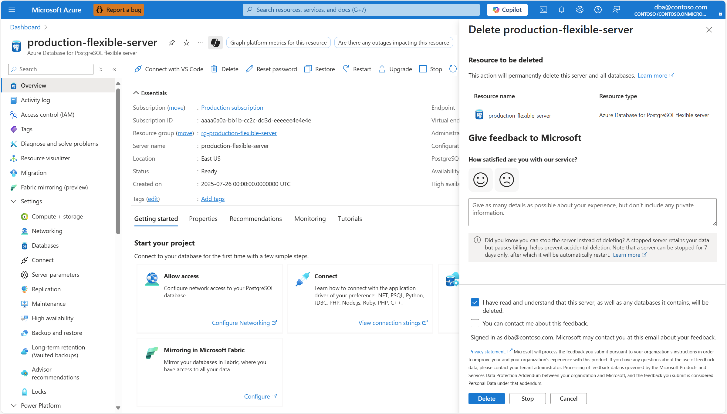 When the deployment completes, you can select Go to resource, to get you to the Overview page of your new Azure Database for PostgreSQL flexible server instance, and start using it:
