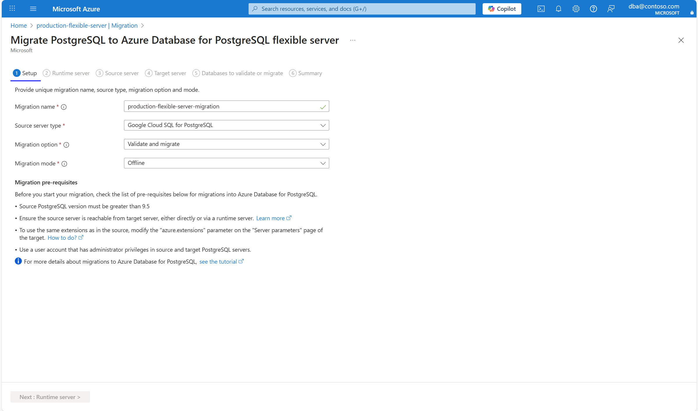 This article guides you in migrating a Google Cloud SQL for PostgreSQL instance to Azure Database for PostgreSQL flexible server in offline mode.
