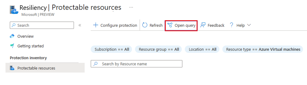 To get started with querying your protectable Azure resources using ARG, you can use the sample query provided by selecting Open query.