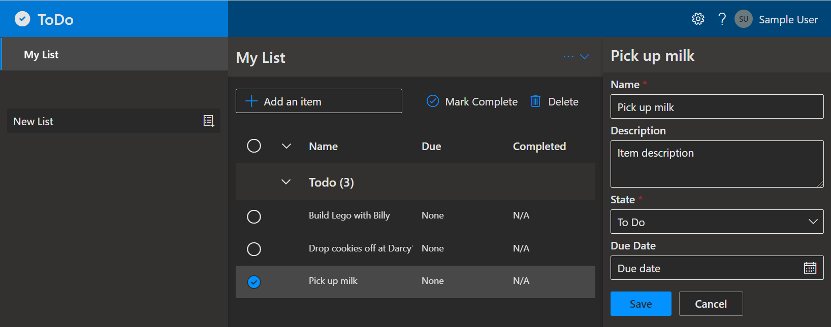 This quickstart shows how to deploy a Spring Boot web application to Azure Spring Apps. The sample project is a simple ToDo application to add tasks, mark when they're complete, and then delete them. The following screenshot shows the application: