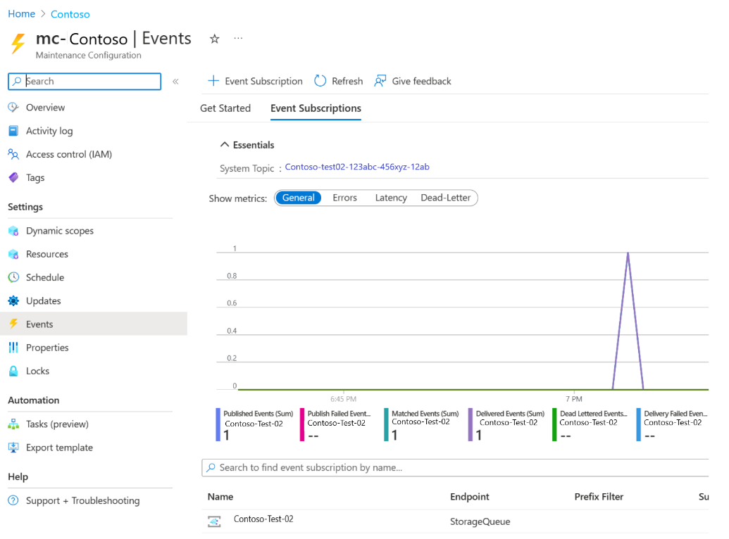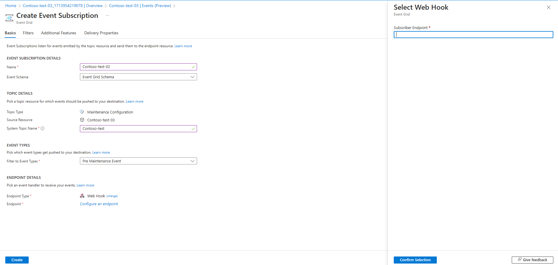 Select +Event Subscription to create a pre-maintenance or post-maintenance event.