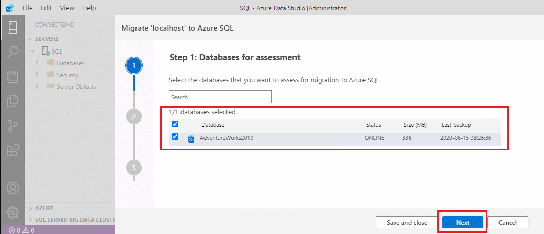 6. Return to the migration wizard in Azure Data Studio.