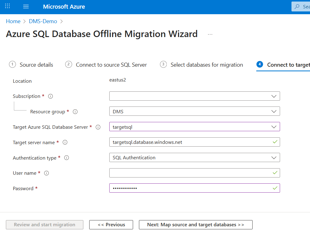 Prepare the target Azure SQL Database