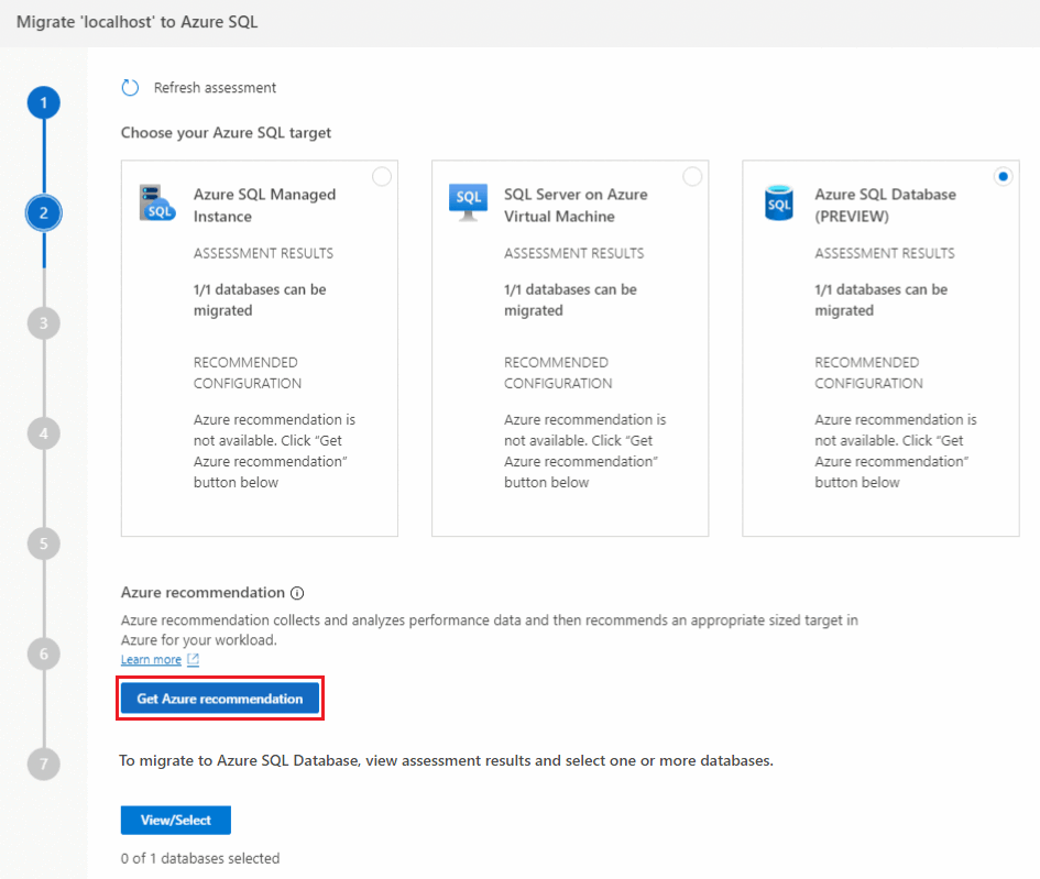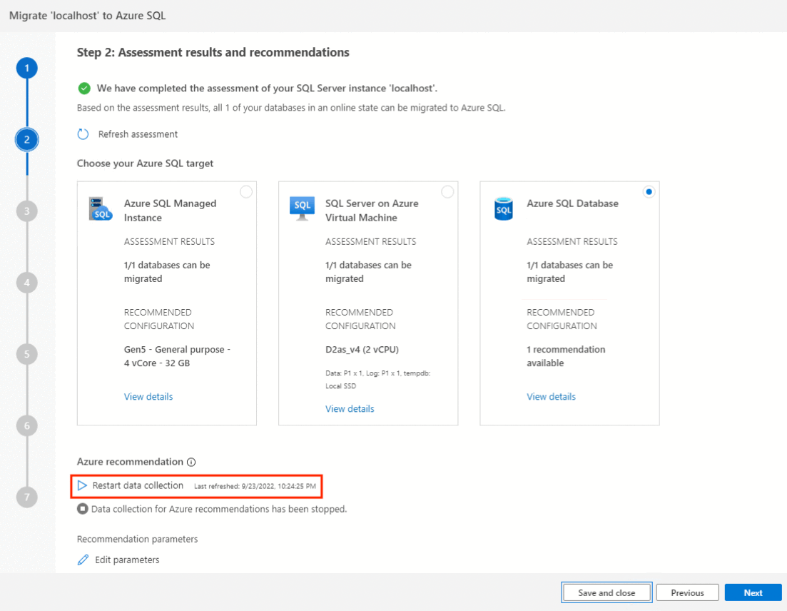 Run database assessment, collect performance data, and get Azure recommendations